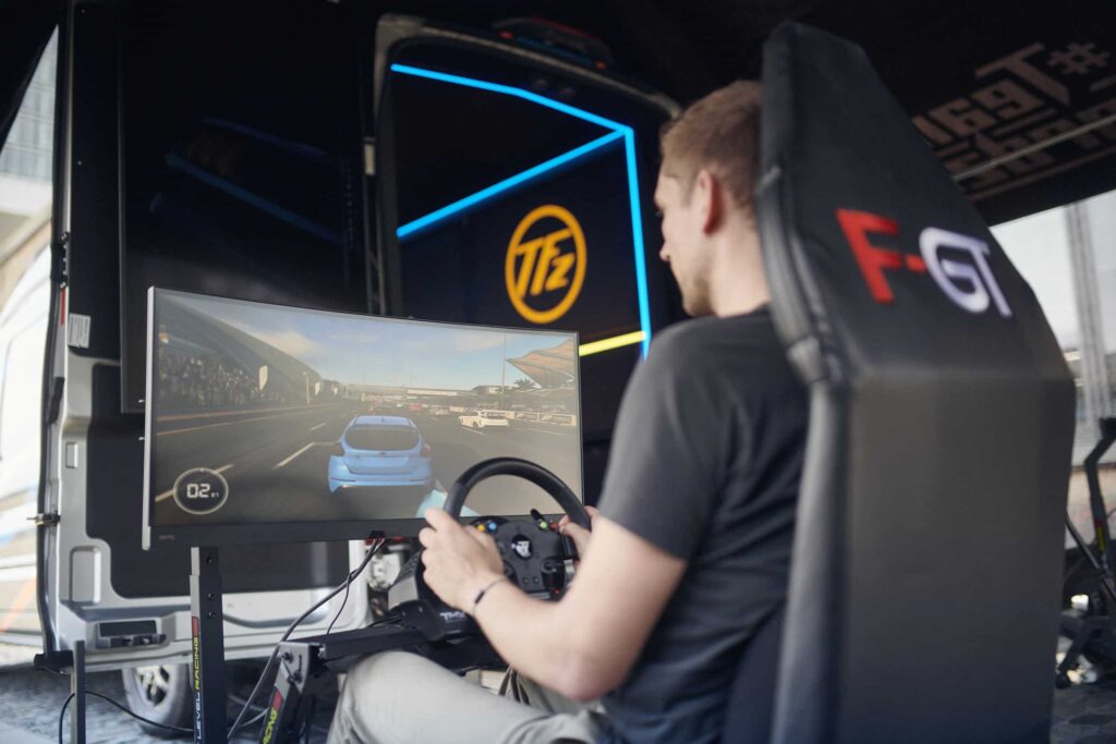 The road trip starts next week in Spain and will give about 100 kids on the first go a chance to join in on the fun. The Ford party van has three separated gaming suites (that are intended to be cleaned easily in a post-pandemic world) and a pop-up tent for the back which will feature two sim racing rigs from Next Level Racing. The rigs are equipped with a Thrustmaster driving apparatus and large BenQ gaming monitors.